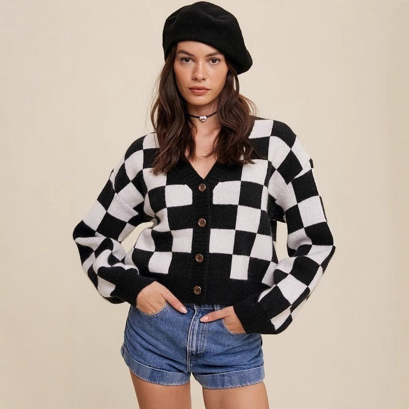 Women's Single-breasted Plaid Commuter Chanel Style Long Sleeve Sweater
